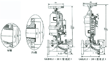 G6B/K41J-6型國標往復式氣動襯膠隔膜閥外形尺寸圖