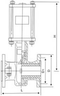 GJ6K41X-6L型常開型氣動管夾閥外形尺寸圖