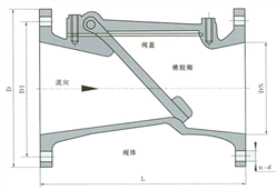 五、法蘭旋啟式橡膠瓣止回閥主要外形尺寸:(法蘭連接尺寸按GB4216的規(guī)定)