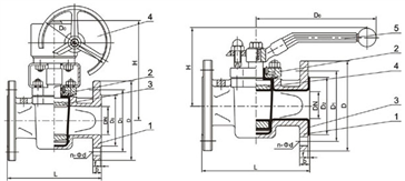 X41F46/F3法蘭襯氟旋塞閥外形尺寸圖