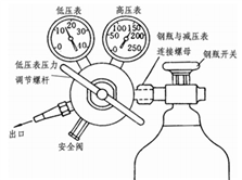 氧氣鋼瓶減壓閥的高壓腔與鋼瓶連接,低壓腔為氣體出口,通往使用系統。高壓表的示值為鋼瓶內貯存氣體壓力。低壓表的出口壓力可由調節螺桿控制。