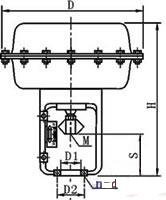 ZHA/B型多彈簧氣動薄膜執行機構由膜片、壓縮彈簧、托盤、推桿、支架、軸套、膜蓋等主要零件構成。是針對老式的ZMA/B型單彈簧氣動薄膜執行機構存在的尺寸大、笨重、深波紋膜片不可靠等問題設計開發的新型氣動薄膜執行機構,其膜蓋盤、限制件等零件均采用鋼板沖壓成型。膜片形狀較復雜,采用特殊的壓制工藝,使爆破強度達22kg/cm2以上。多彈簧形式改善了彈簧制造的工藝性,有利于不同彈簧范圍的組配??烧{零功能則提高了線性精度。表面處理采用環氧 靜電粉未噴涂,具有較高牢度和耐腐蝕性。具有受力均勻、穩定性好、尺寸小,重量輕等優點。以壓縮空氣為能源動力,接受電-氣閥門定位器或電磁閥輸入的氣源壓力信號,此壓力作用在膜室膜片上產生推力壓縮彈簧組件,并使推桿位移,當推桿與彈簧組被壓縮后產生的反力相平衡時,閥桿就穩定在相應行程上。依照力平衡原理,行程大小與壓力信號輸入大小成一定的比例關系,從而達到閥門閥芯正確定位。